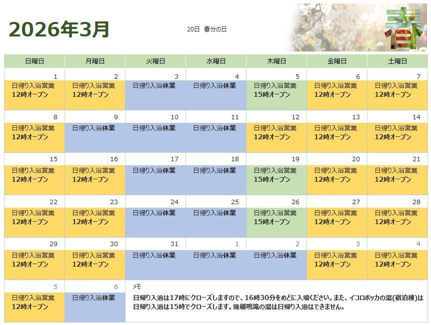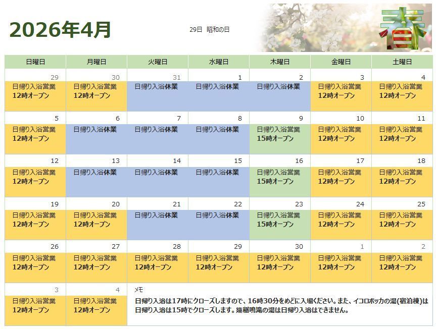 12:00~17:00(日帰り入浴)